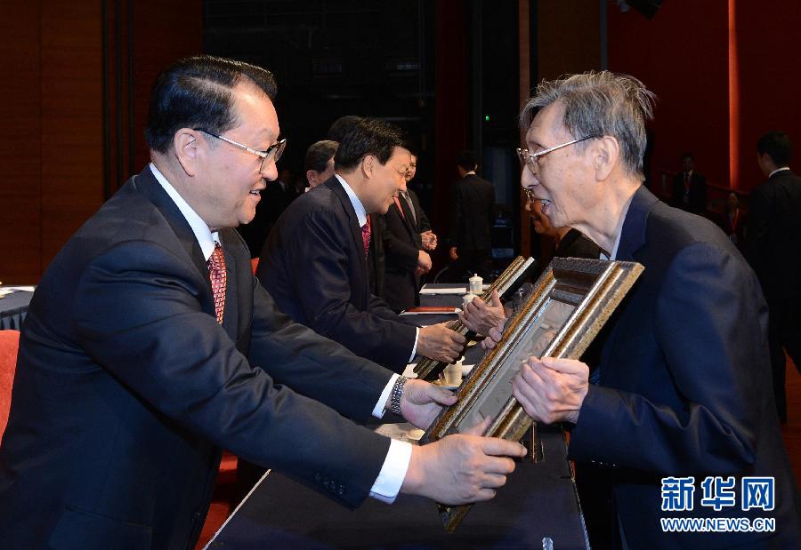 7月9日,中国国家博物馆建馆100周年纪念大会在北京隆重举行。中共中央政治局常委李长春出席大会并为文博界老专家颁奖。 新华社记者刘建生 摄