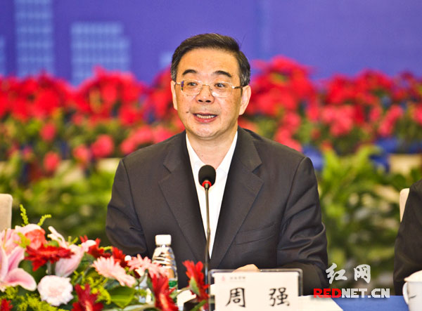 (湖南省委书记、省人大常委会主任周强致辞并向与会者介绍湖南省情。)