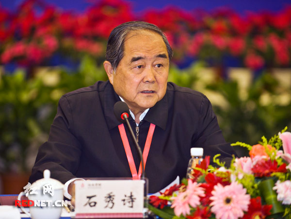 红网长沙10月29日讯(记者 刘容 摄影 明健飞)10月29日上午,全国人大财经委经济立法工作座谈会在长沙召开。全国人大常委会委员、财经委主任委员石秀诗就经济立法工作作主题发言。湖南省委书记、省人大常委会主任周强致辞。