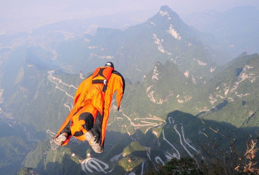 “蝙蝠侠”天门山试飞坠崖 石壁发现20多米长血迹