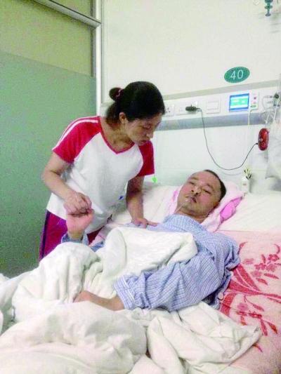 湘雅二医院,妻子王某正在照顾重伤的廖述柳。